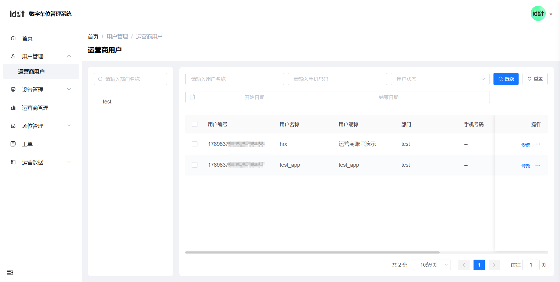 可以对车场进行管理,有修改、删除和新建车场的功能。